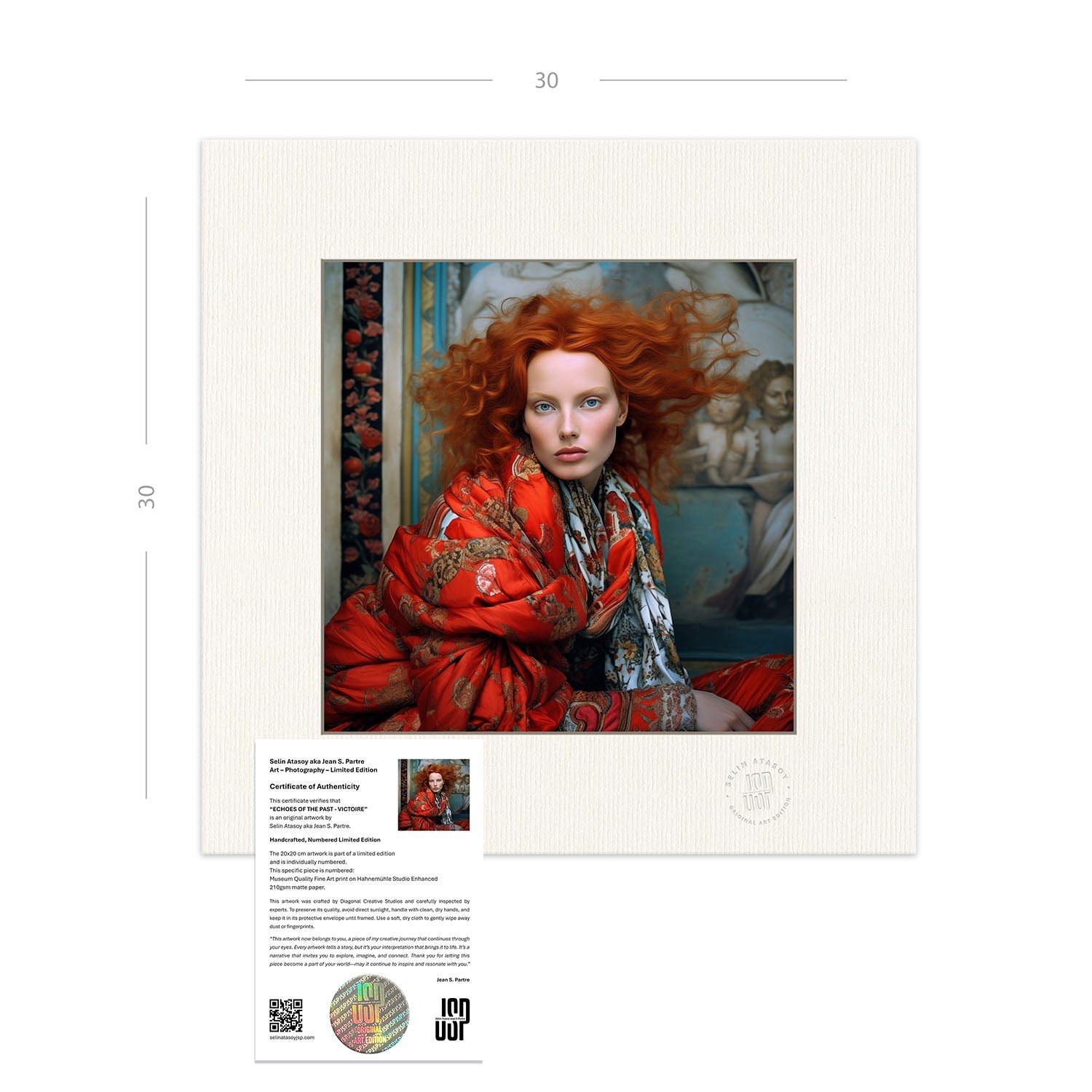 - 30x30 cm: 20x20 cm artwork with a premium, acid-free passe-partout